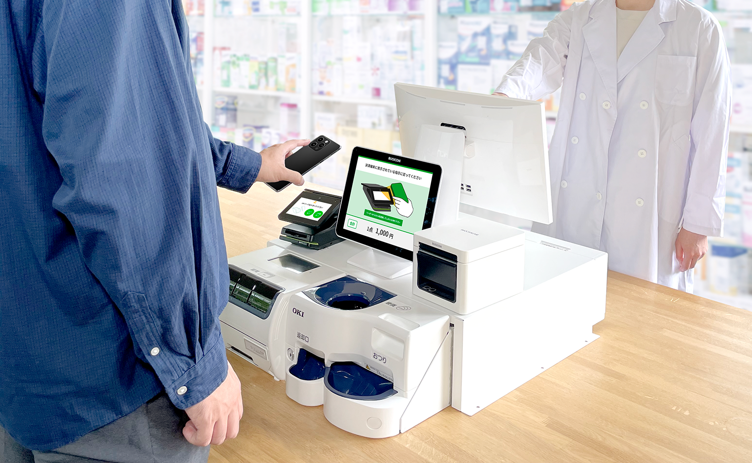 各社レセコンとの連動や、処方会計とOTC医薬品の同時会計など、薬局特有の会計に対応しています。対面モニターで決済方法の選択やガイダンスの表示、音声での案内が行われるので、機械が苦手な患者さんでも安心してお使いいただけます。