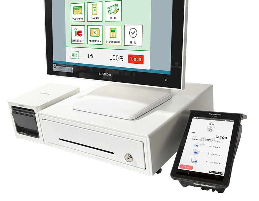 「stera terminal」との連動で、現金はもとより各種カード決済、電子マネー決済、コード決済による会計が使用可能となります。